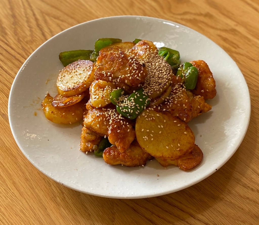 一品料理だし、チキンフライもできているのを温めてあえるだけなので簡単ですし、調味料も普段使わないBBQソースがベースなので、いつもと違った味になって、家族にも新鮮のようで喜ばれます。